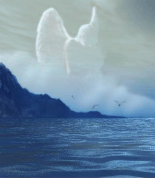 На картинке изображен ангел, спускающийся с небес. Его изящные крылья развернуты в стороны, словно символизируя защиту и надежду. Сияющий свет окружает фигуру ангела, создавая впечатление небесной благодати и миротворчества. Этот образ напоминает о духовности, защите и покровительстве высших сил, приносящих свет и добро в мир людей. Картина передает чувство возвышенности, спокойствия и света, что делает ее вдохновляющим произведением искусства.