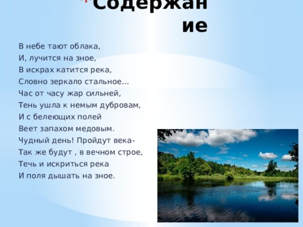 В небе тают облака и Лучистая на зное в искрах катится река