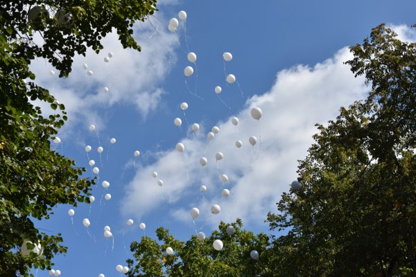 Белые шары улетают в небо