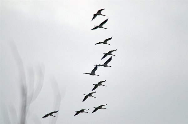 Клин журавлей в небе