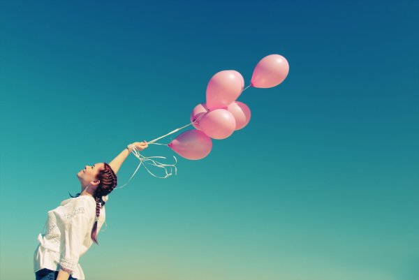 Девочка летит на воздушных шарах
