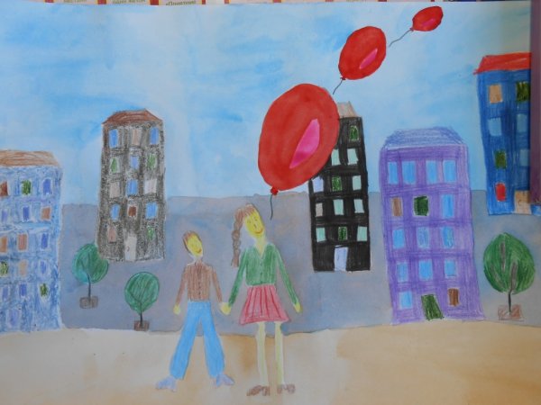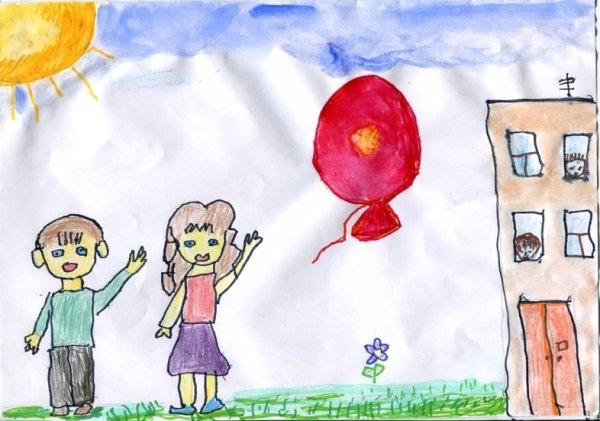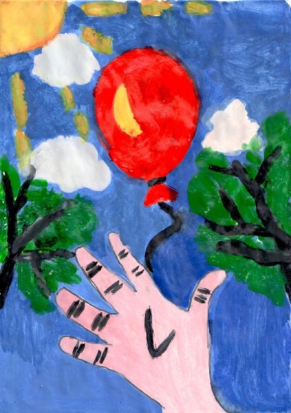 Рисунок к рассказу красный шарик в синем небе в Драгунский