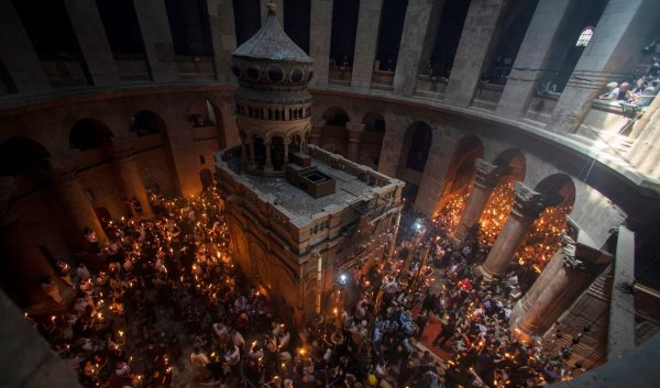 Благодатный огонь на Пасху в Иерусалиме