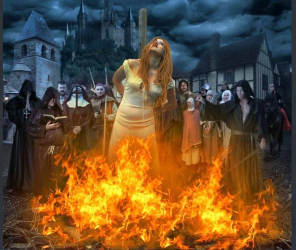 ![Ведьма на костре инквизиции]()