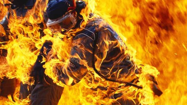 ![Спасатель в огне]()