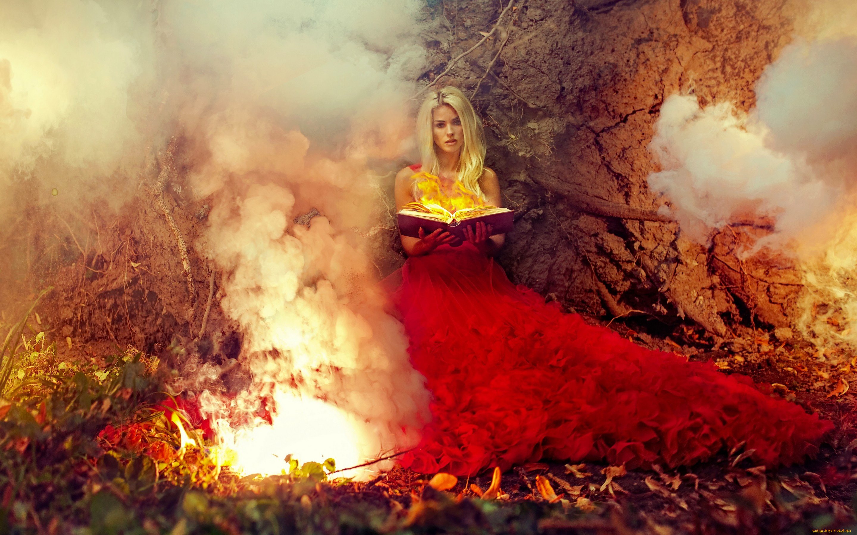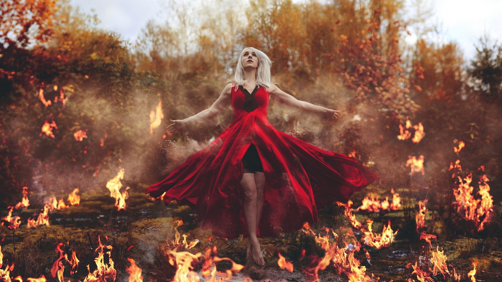 Девушка на фоне пожара
