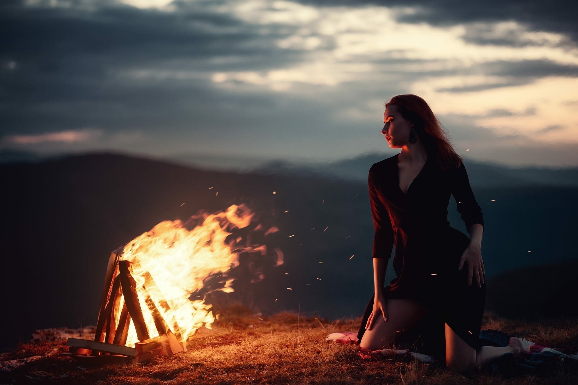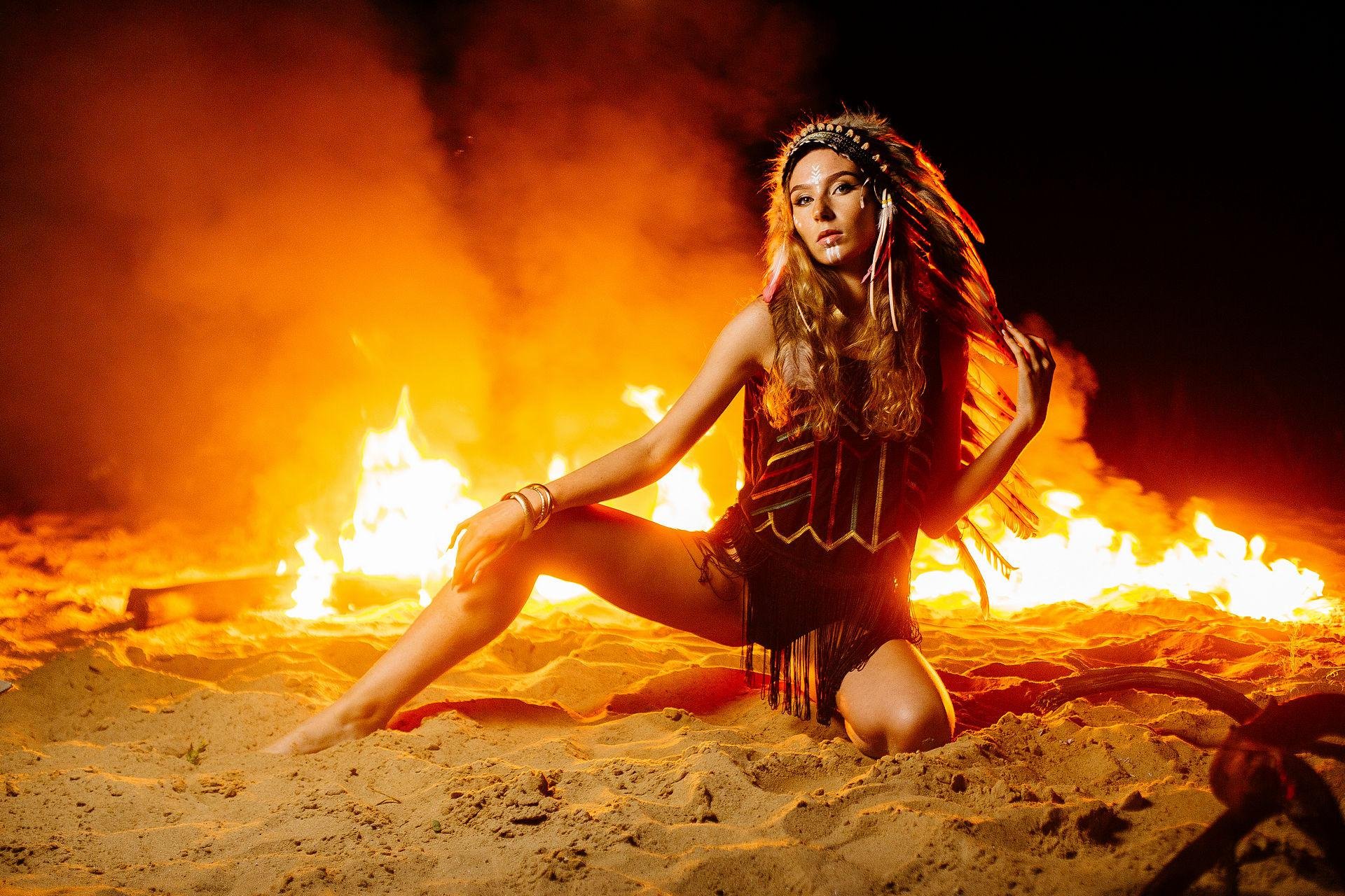 Девушка возле огня
