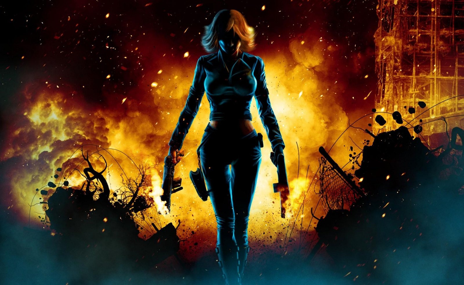 Девушка на фоне взрыва