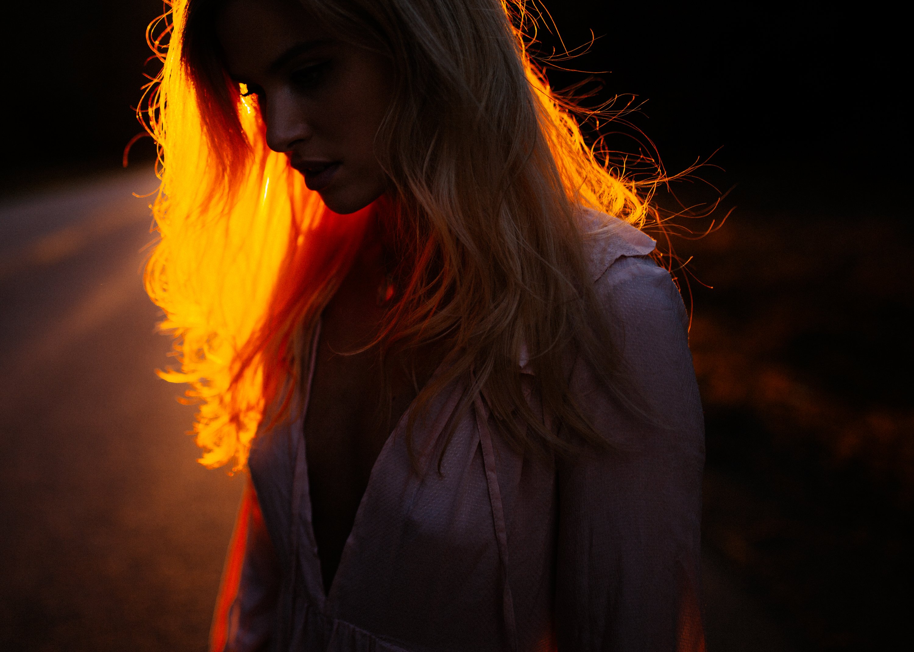 Девушка на фоне огня