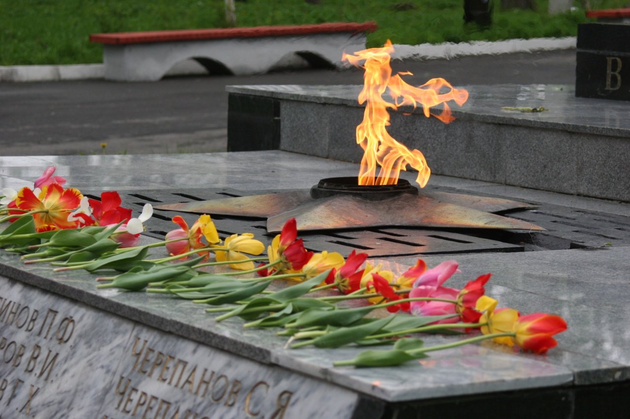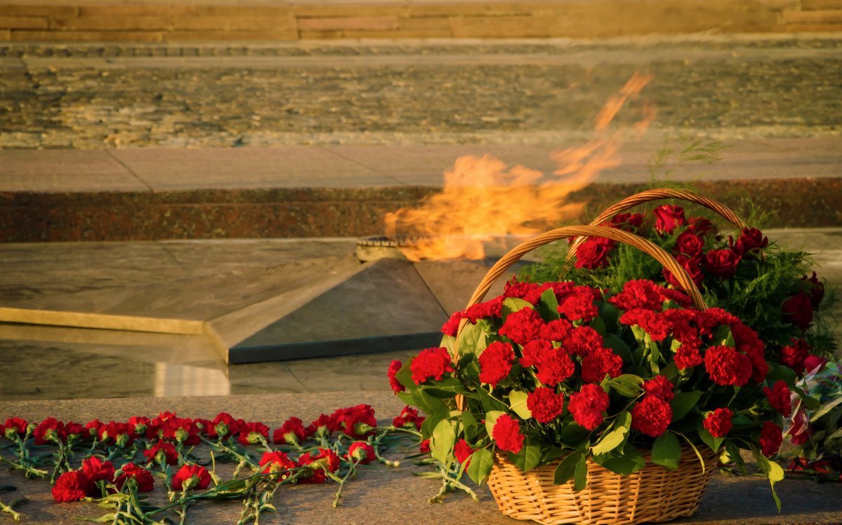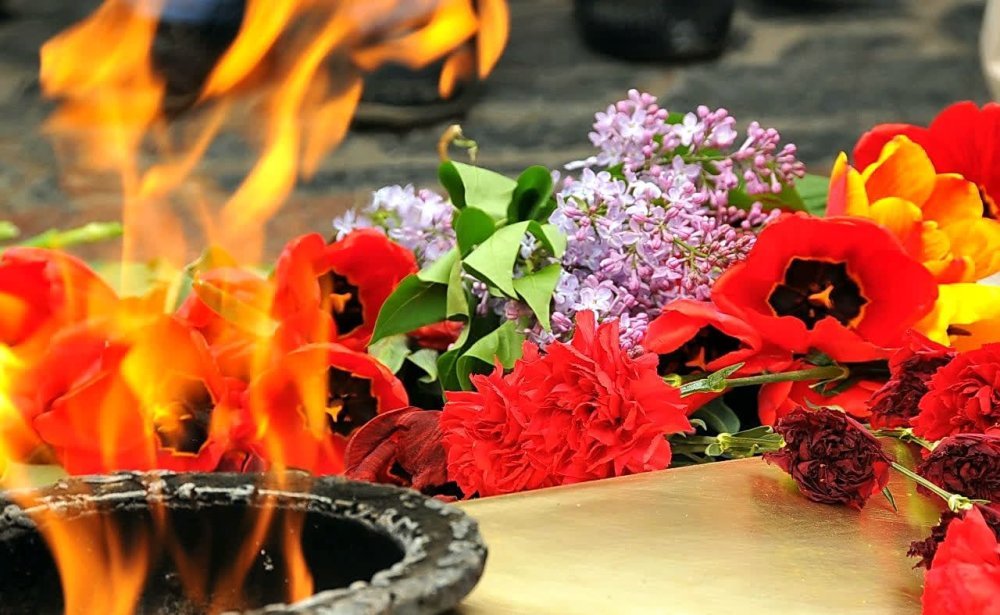 ![Вечный огонь с цветами]()