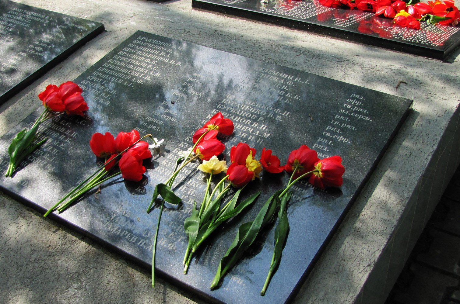 ![Цветы на мемориале]()