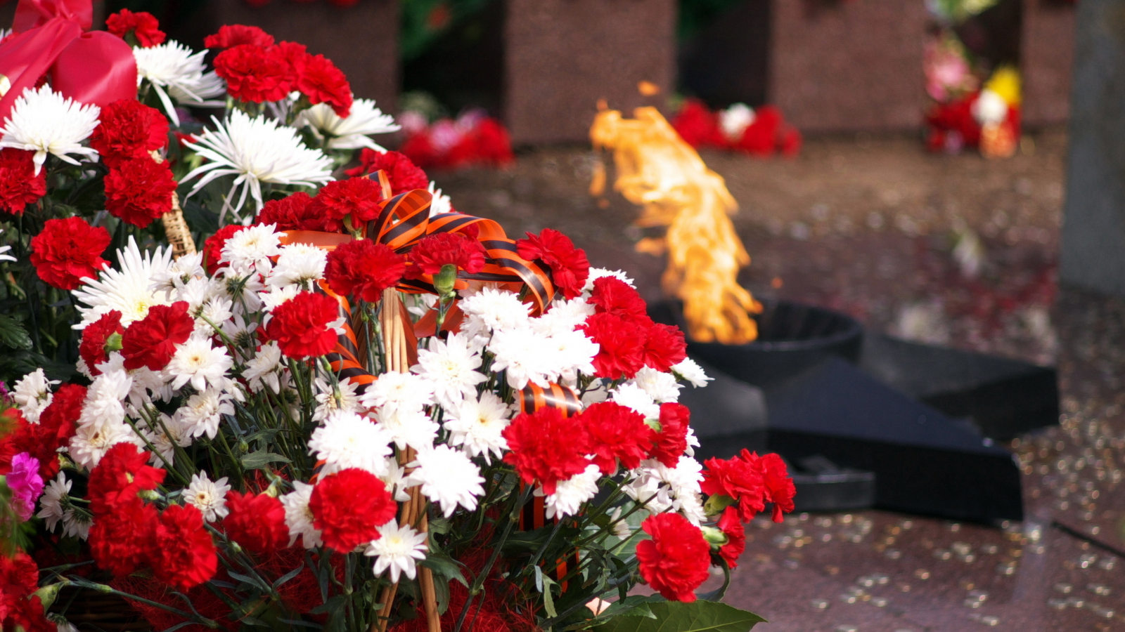![Гвоздики на мемориале]()