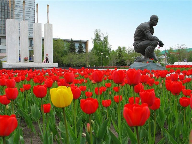 ![Тюльпаны у вечного огня]()