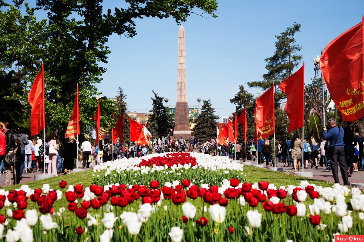 ![Цветы у памятника Победы]()