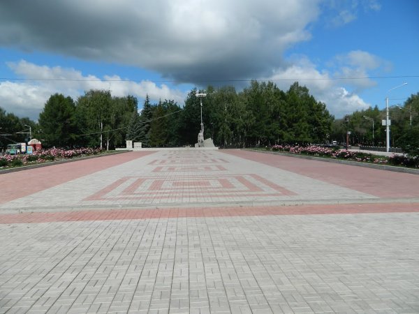 Мемориальный комплекс и вечный огонь на площади Победы. Ахтубинск