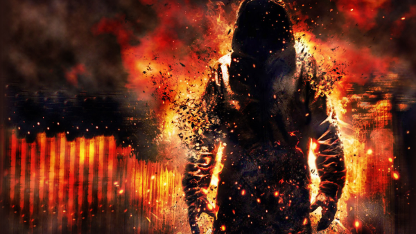 ![Человек в капюшоне в огне]()