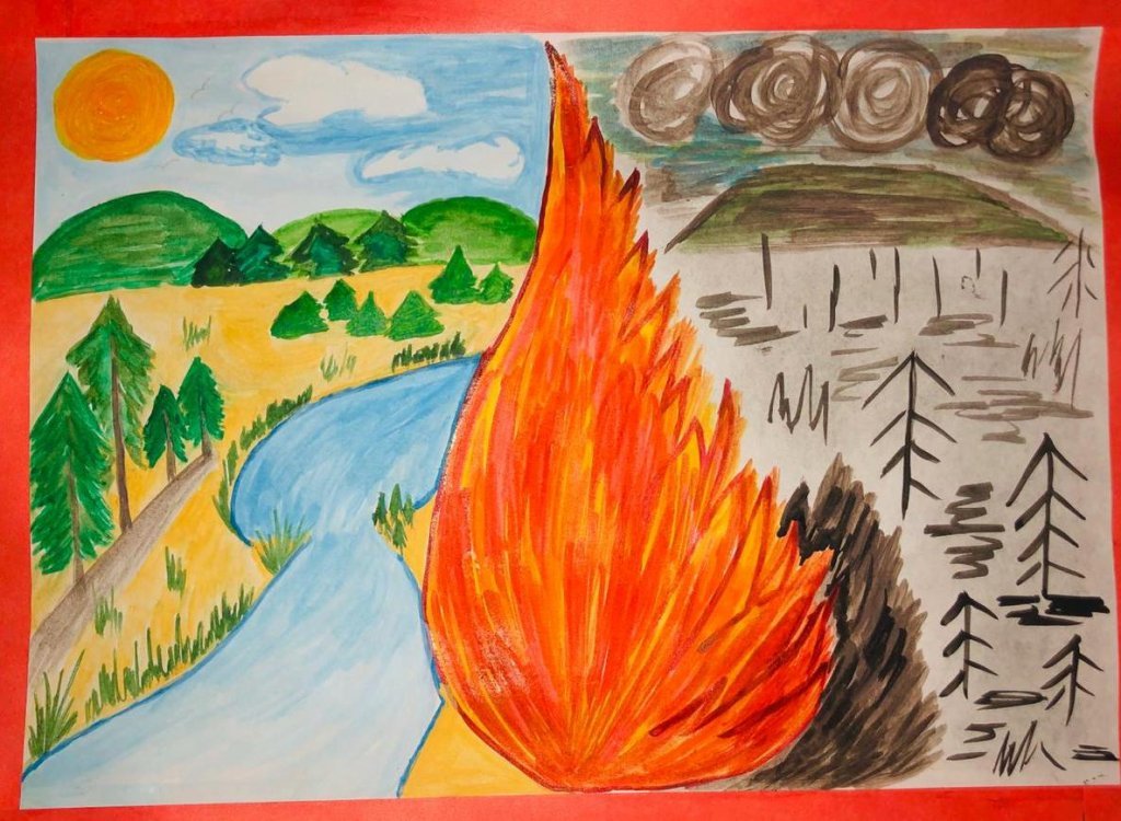 Пожар в лесу рисунок для детей