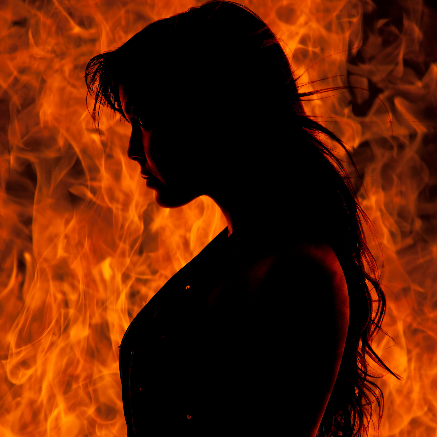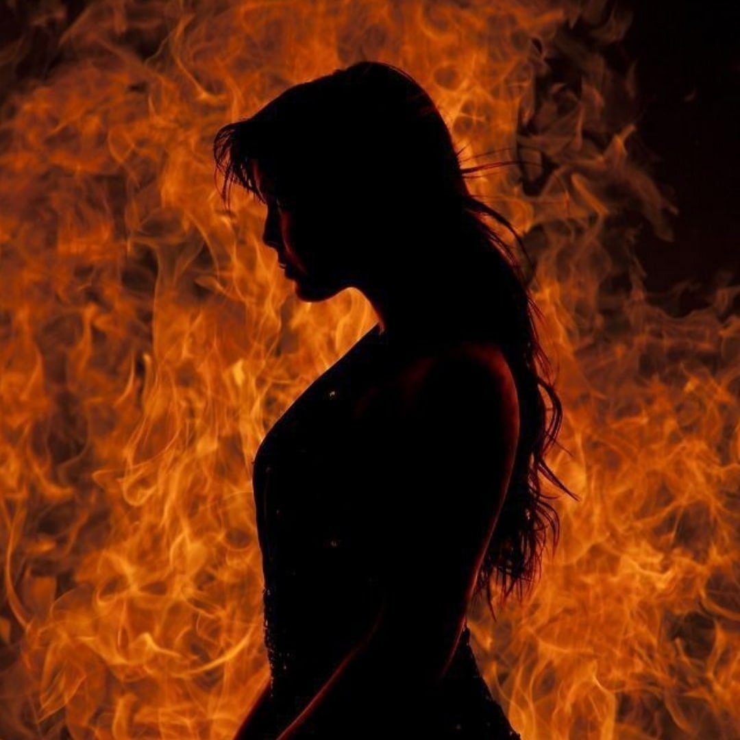 Силуэт девушки в огне