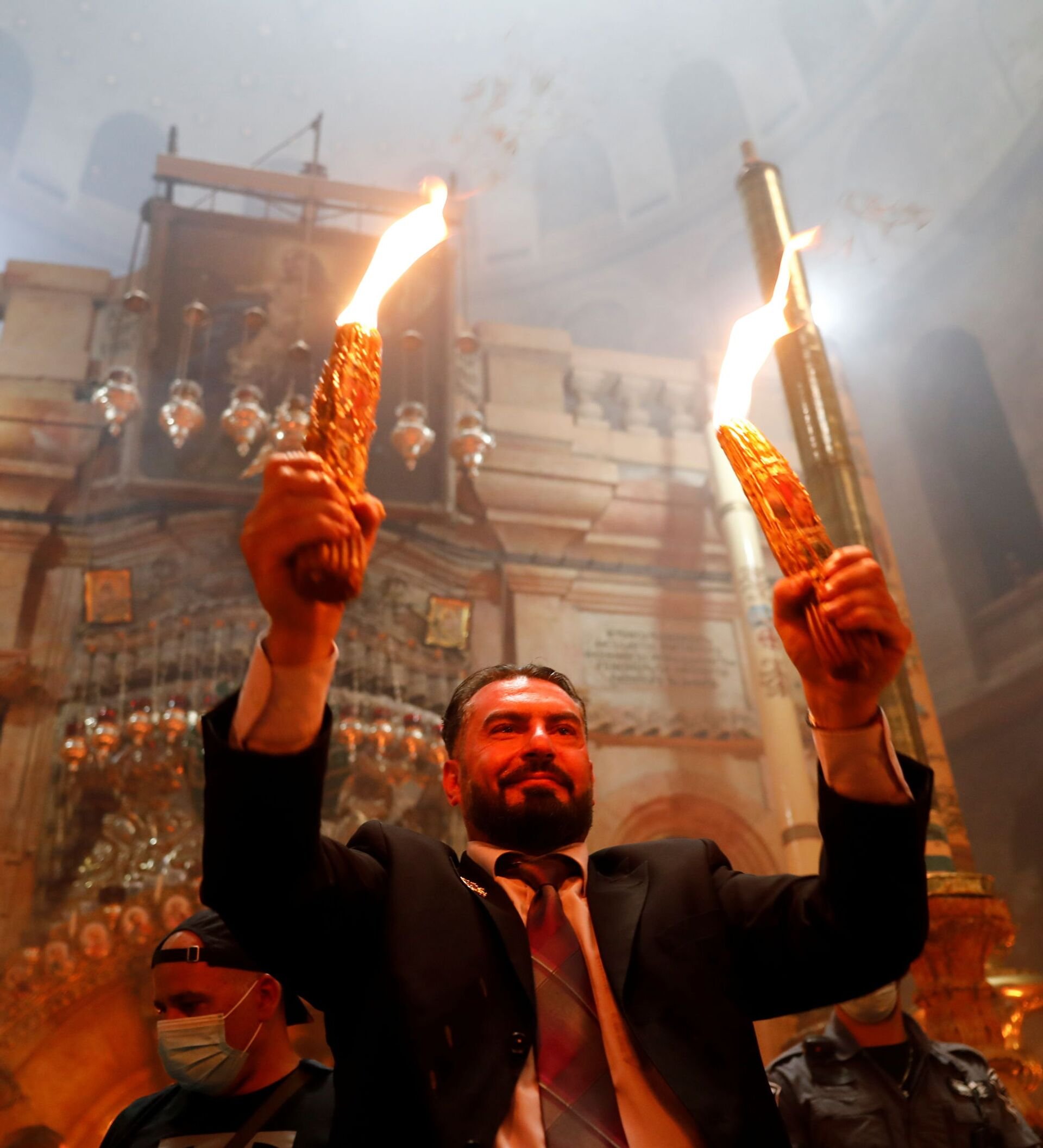 ![Схождение Благодатного огня в Иерусалиме 2021]()