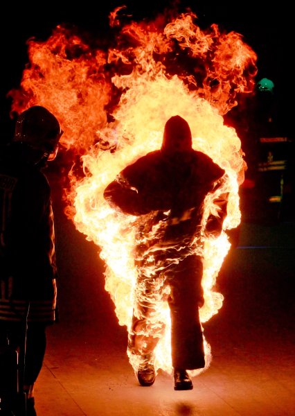Ощутите пылающий адреналин и волнение, глядя на удивительные изображения человека, погруженного в мощный огненный поток. Вихрь пламени окружает его тело, создавая невероятное зрелище силы и опасности. Эти картинки заставят вас задуматься о хрупкости человеческой природы перед могуществом стихии, вызывая микс эмоций от трепета до изумления.