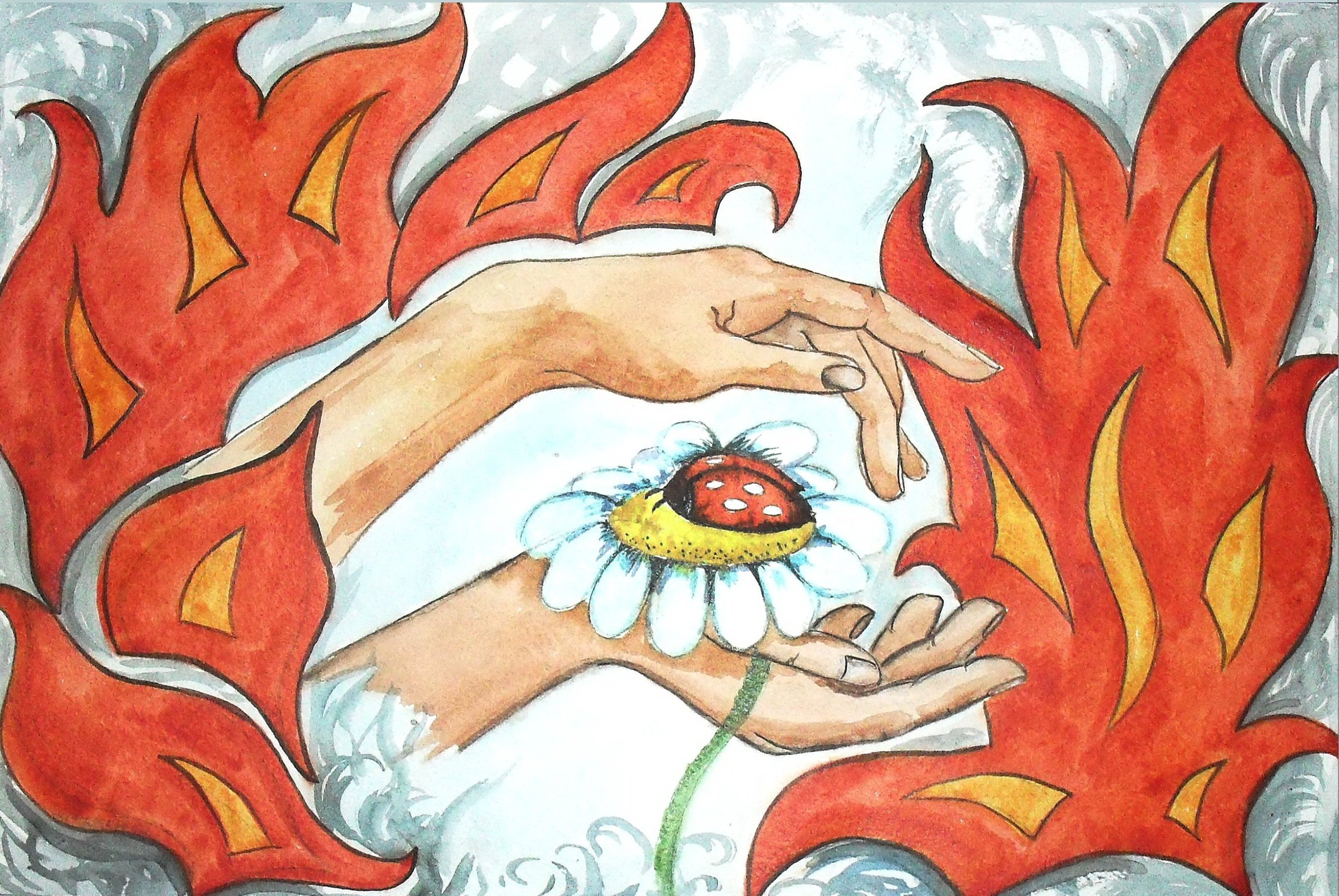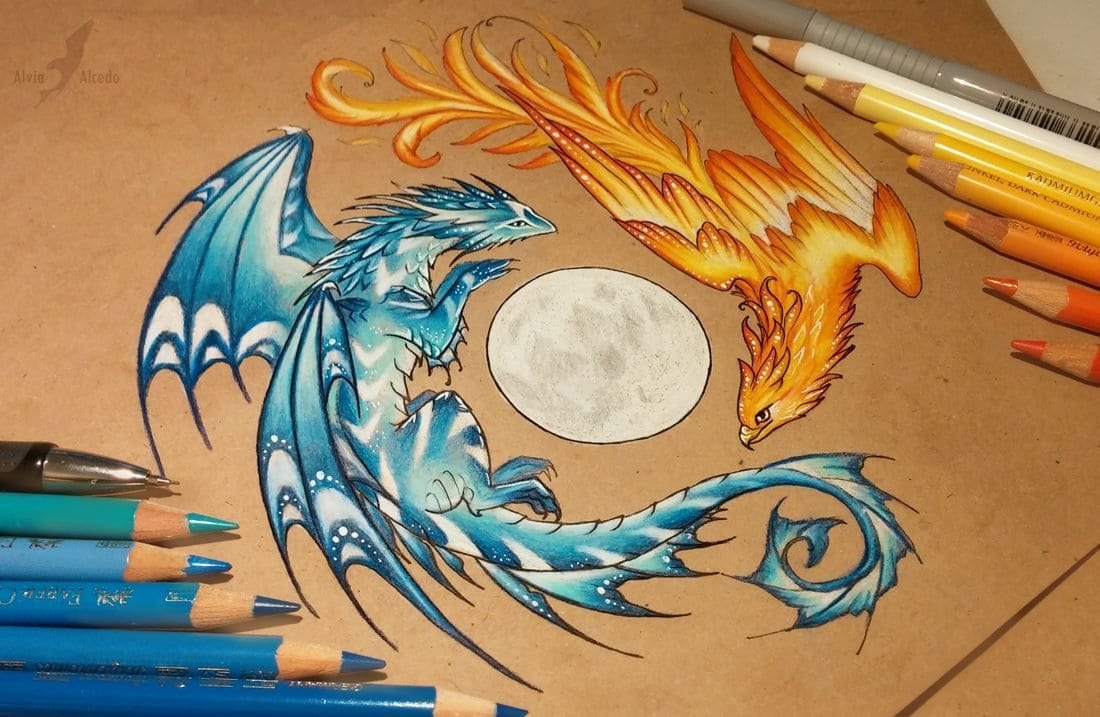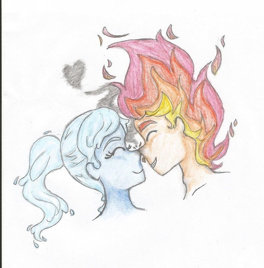 Огонь и вода рисунок карандашом
