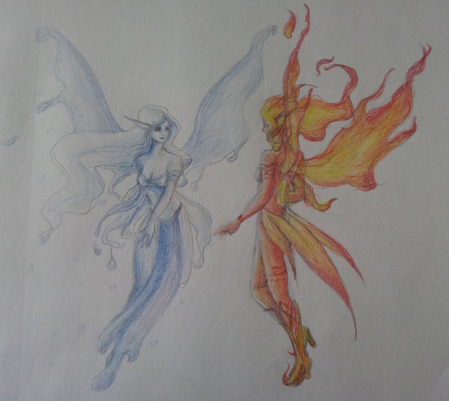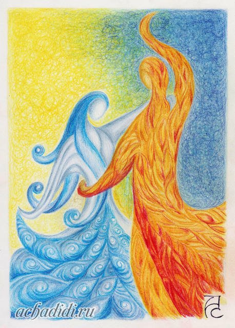 Дуэт огня и воды, изображенный мастерски карандашными штрихами, словно танец элементов на бумаге. Яркие искры пламени соседствуют с нежной прозрачностью водных линий, создавая гармоничный контраст и уникальное сочетание двух противоположностей. Каждая деталь художественной композиции наполнена энергией и символикой, заставляя зрителя задуматься о вечном противостоянии стихий и их взаимодействии.