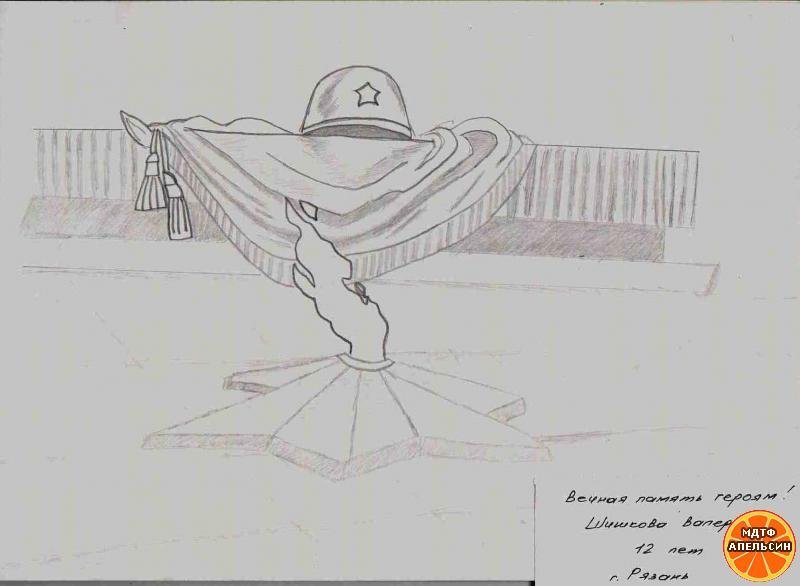 ![Нарисовать памятник неизвестному солдату во Ржеве карандашом]()