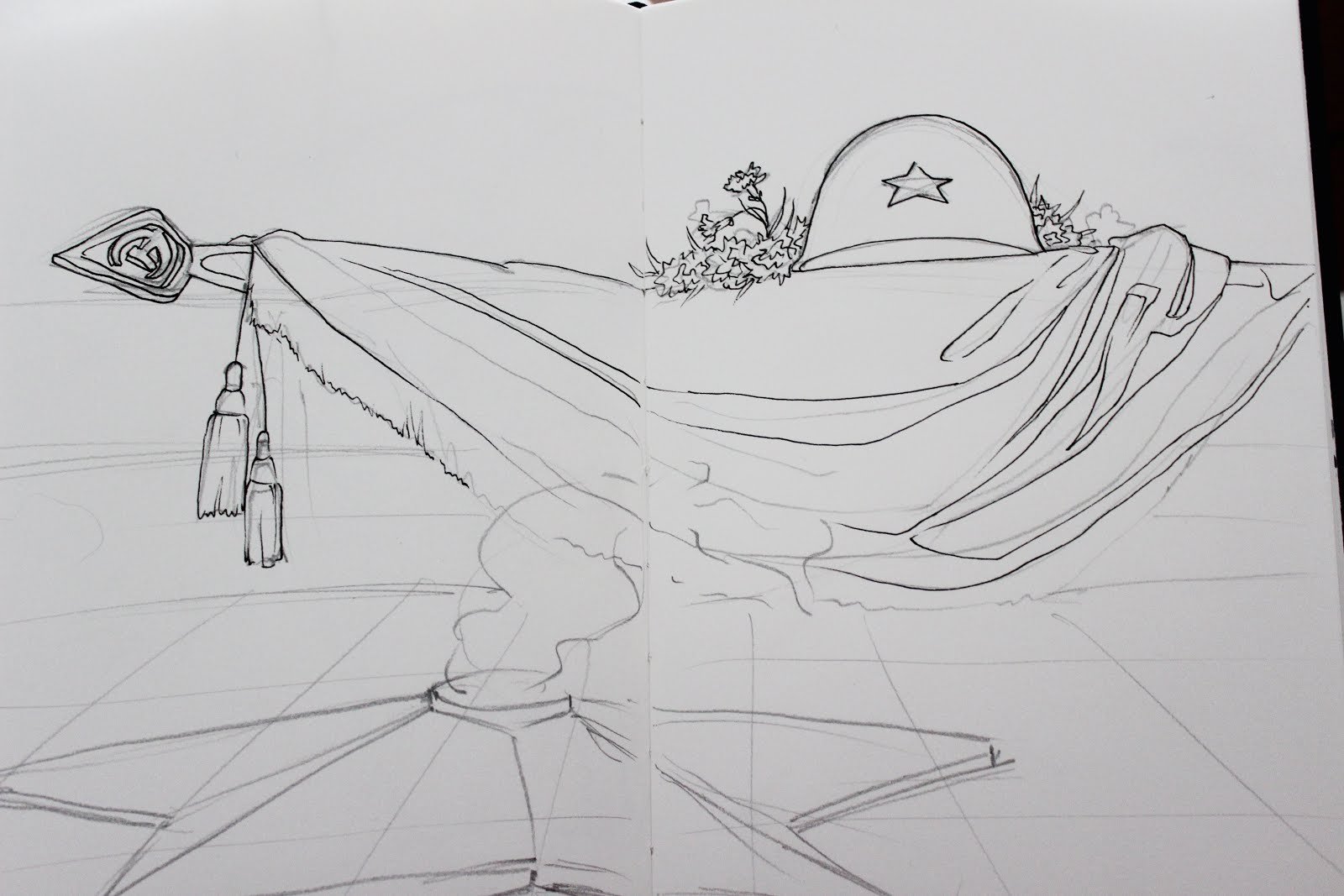 Нарисовать памятник неизвестному солдату во Ржеве карандашом