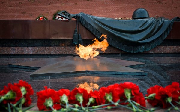 Цветы у могилы неизвестного солдата