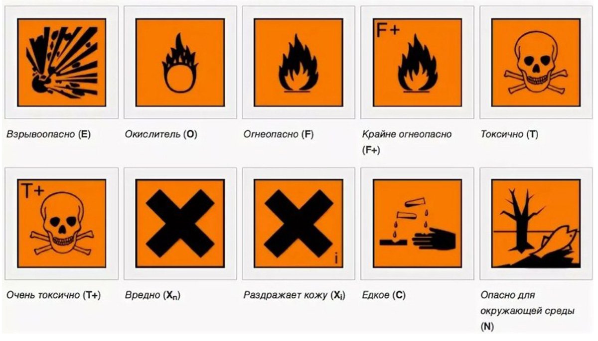 ![Легковоспламеняющиеся жидкости знак опасности]()