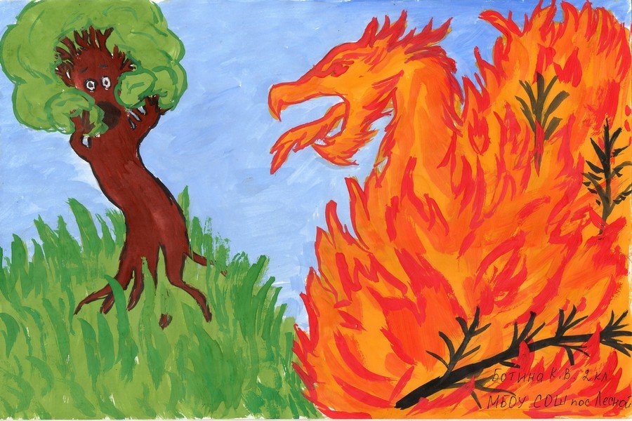 Рисование пожар в лесу