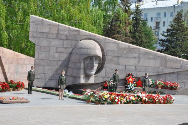 Вечный огонь и горельеф "Скорбящей матери-родине"