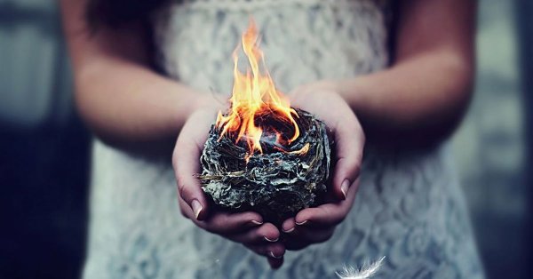 ![Девушка с огнем в руках]()