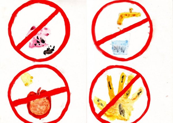 Запрещающий знаки, предостерегающие от нарушения правил гиоиены