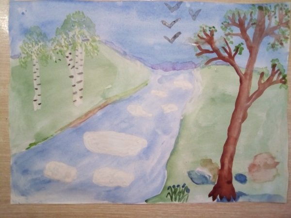 ![Детские рисунки весенней природы]()