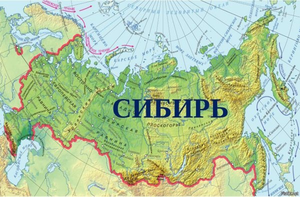 ![Физическая карта России с горами и равнинами и хребтами]()