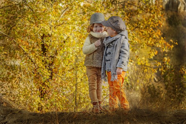 Дети на прогулке осенью