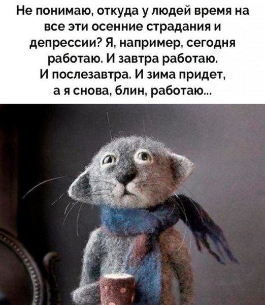 На картинках про осеннюю депрессию с надписями встречаются шутливые и ироничные комментарии, которые помогают посмеяться над этим временем года. Характеризуя осеннюю меланхолию через призму юмора, эти изображения могут поднять настроение и показать, что даже в серых и унылых днях можно найти что-то забавное и легкое. Такой подход к теме делает ее менее тяжелой и помогает пережить осеннюю хандру с улыбкой на лице.