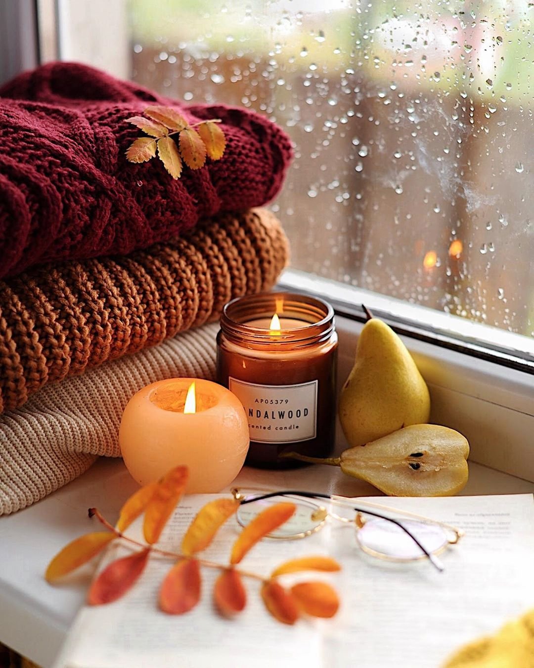Осенние листья и свечи