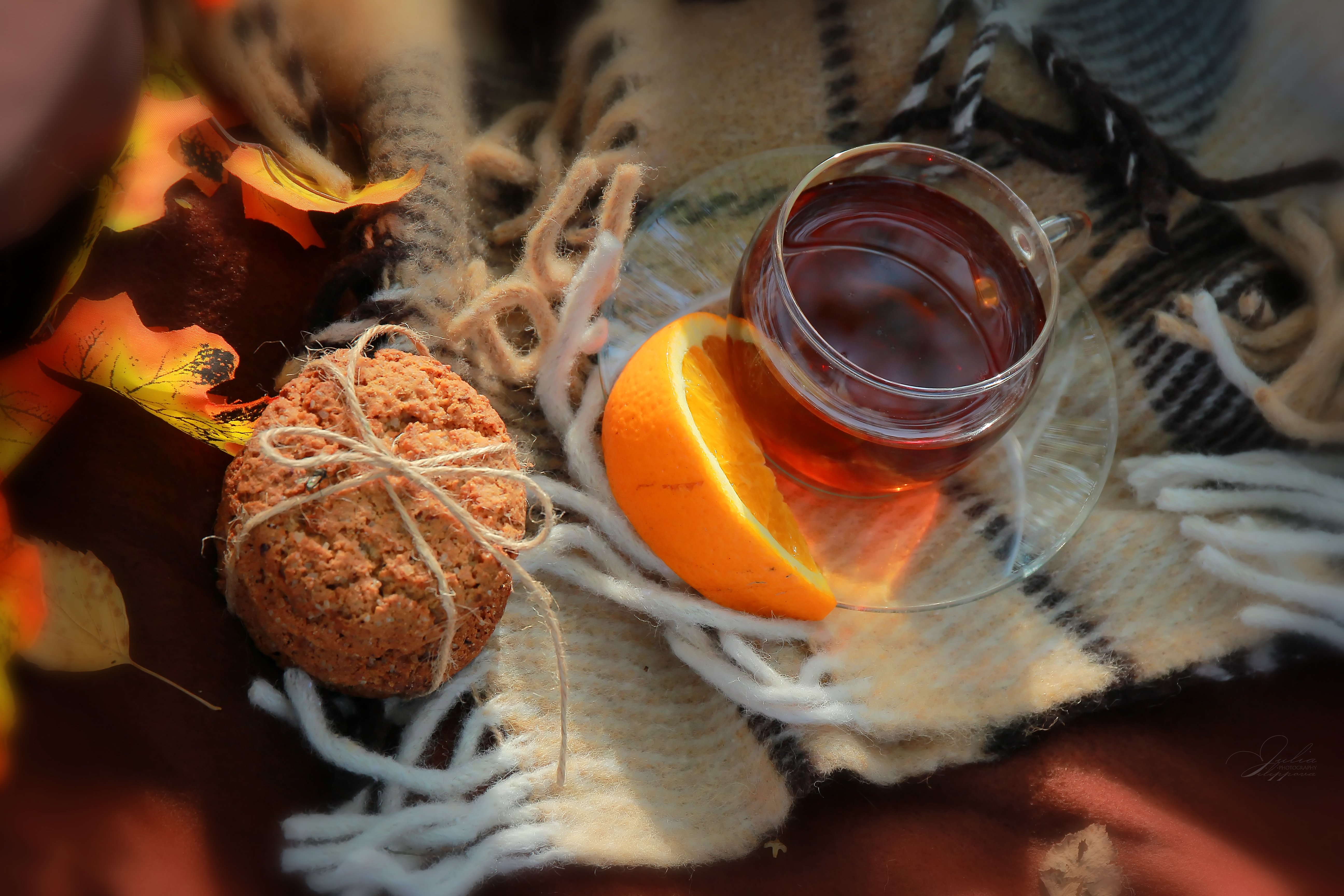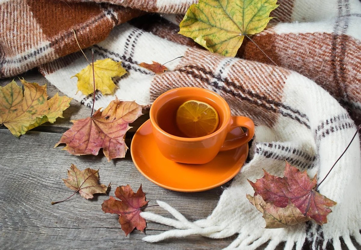 Осень чай плед