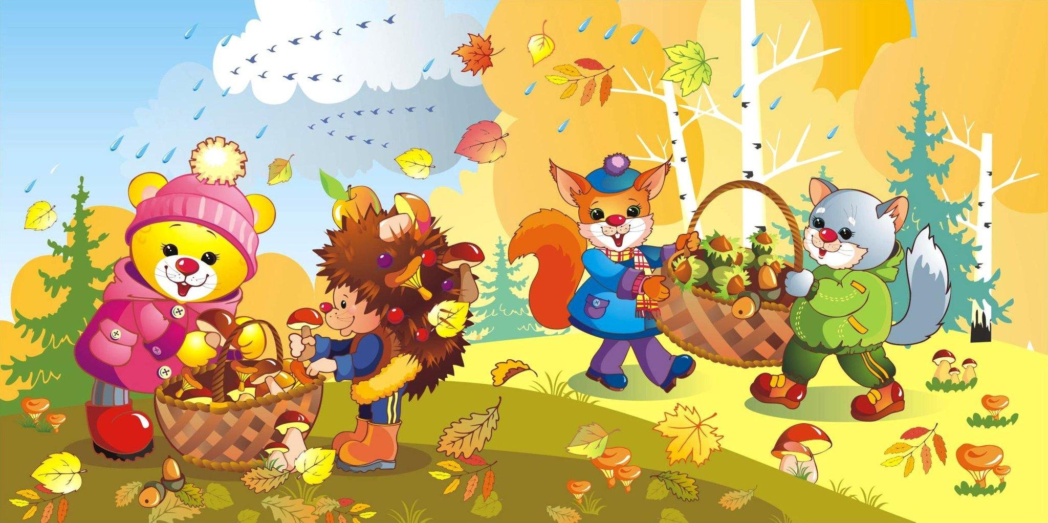 Мультяшные дети осень