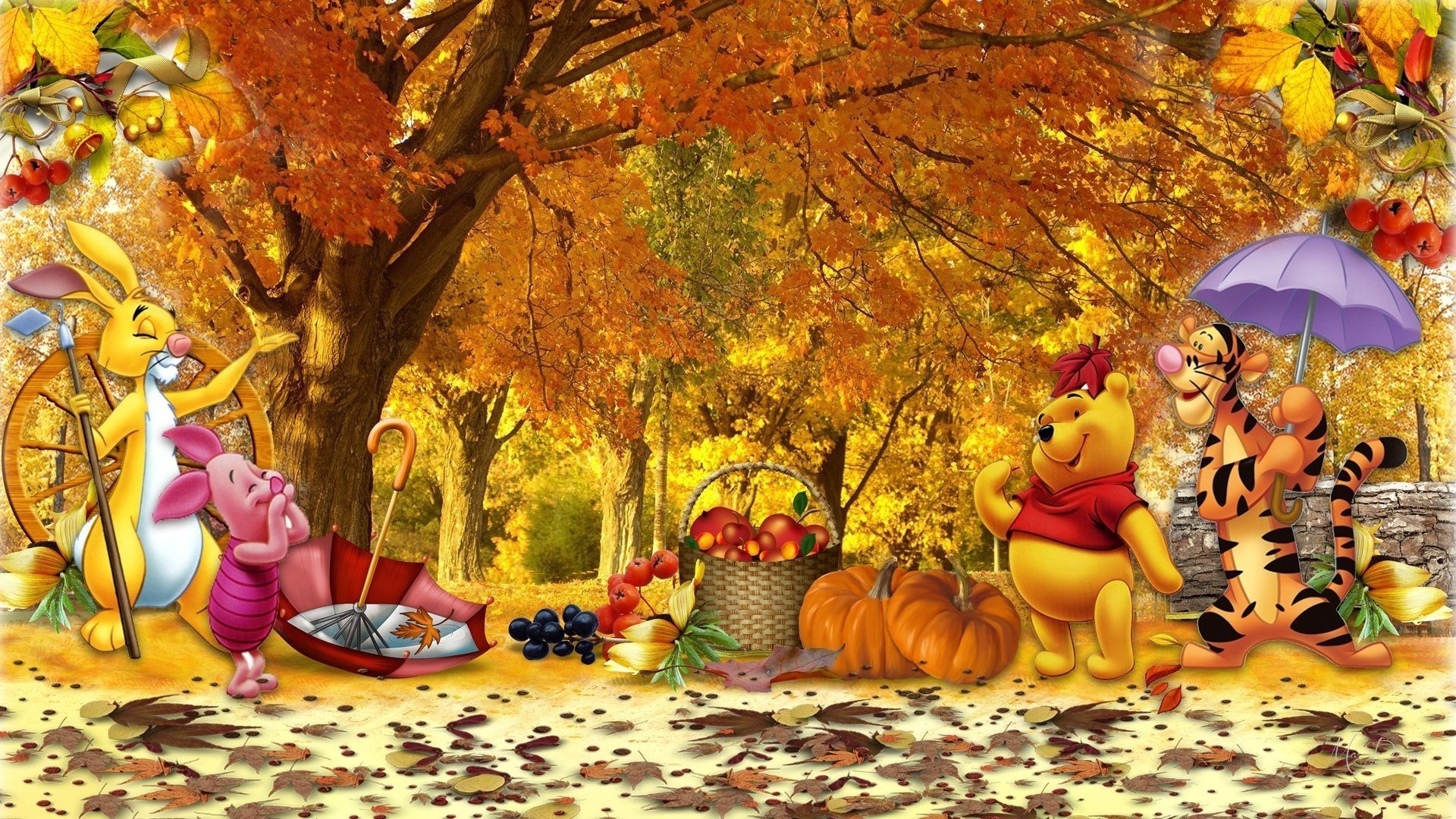 ![Осенние обои с мультяшками]()