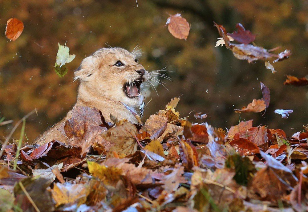 ![Животные в листве]()