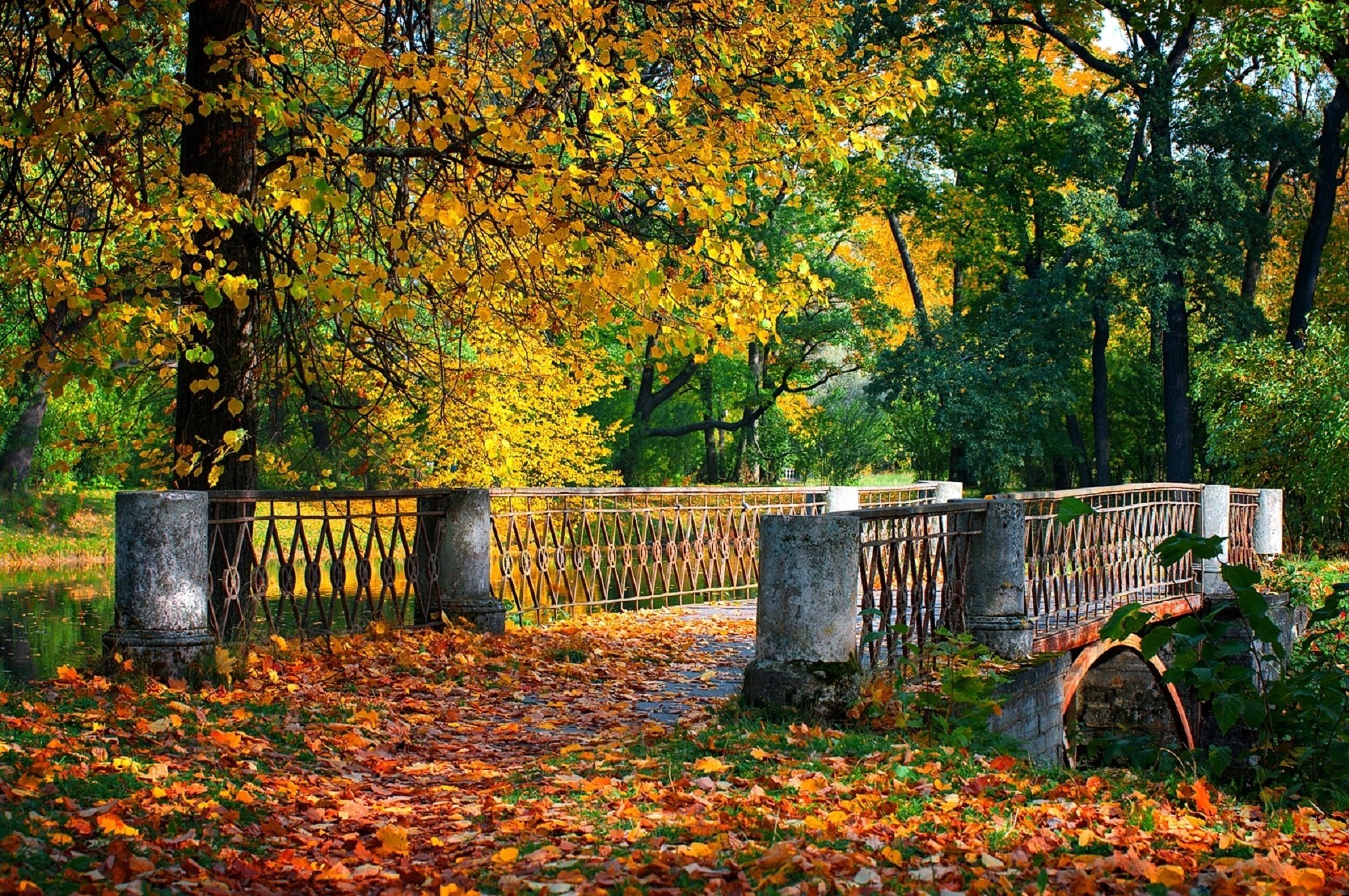 ![Осень парк мостик]()