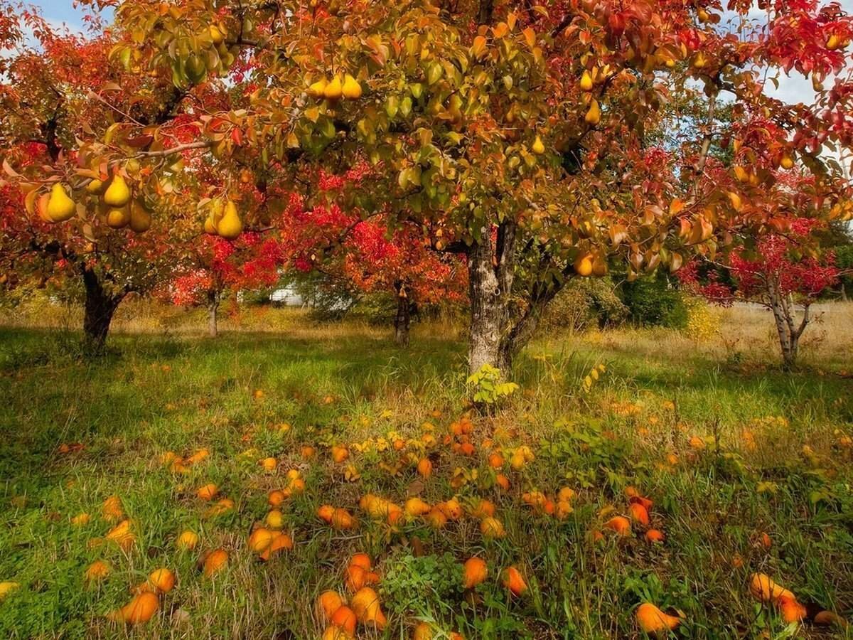 ![Яблоневый сад осень]()