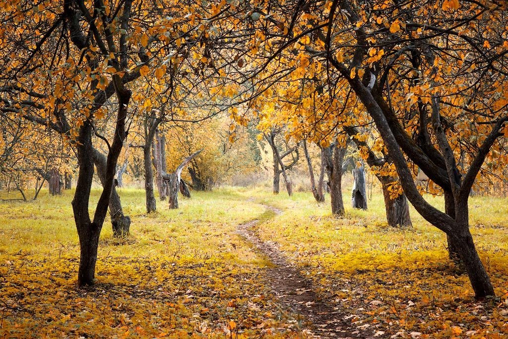 Яблоневый сад осенью