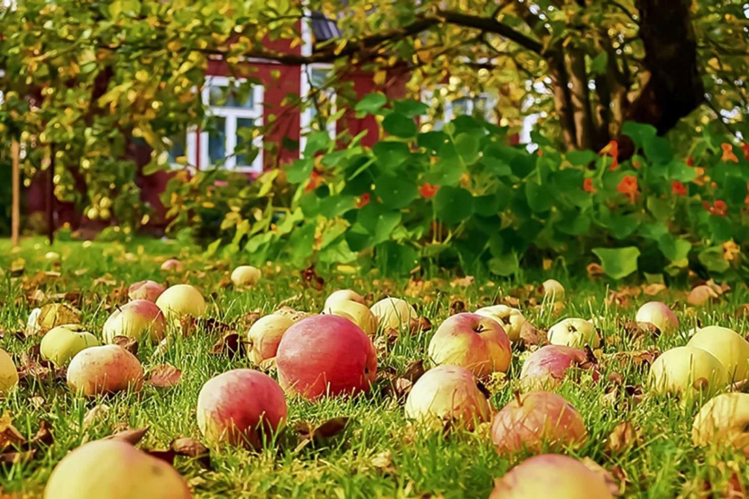 ![Яблоневый сад осенью]()