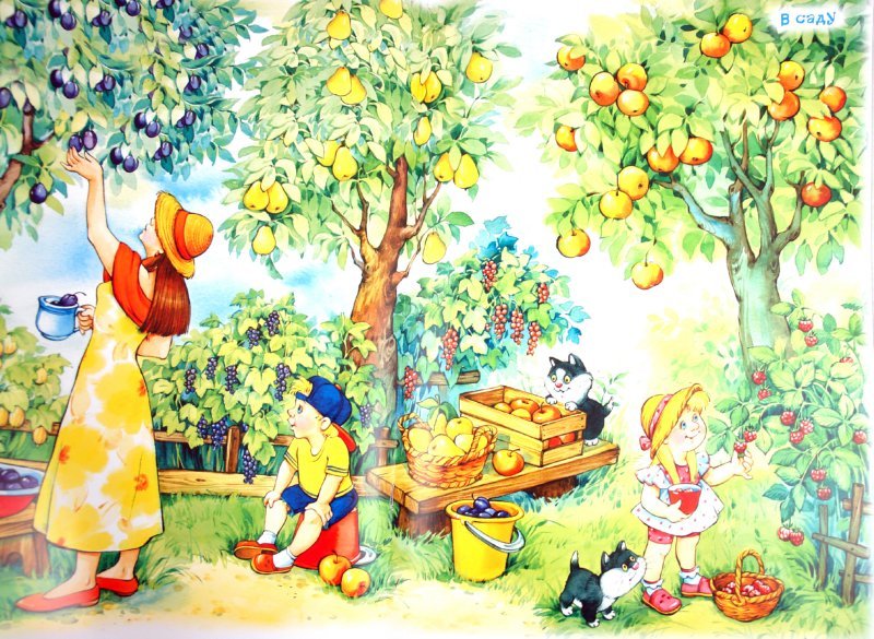 ![Сад с фруктовыми деревьями для детей]()