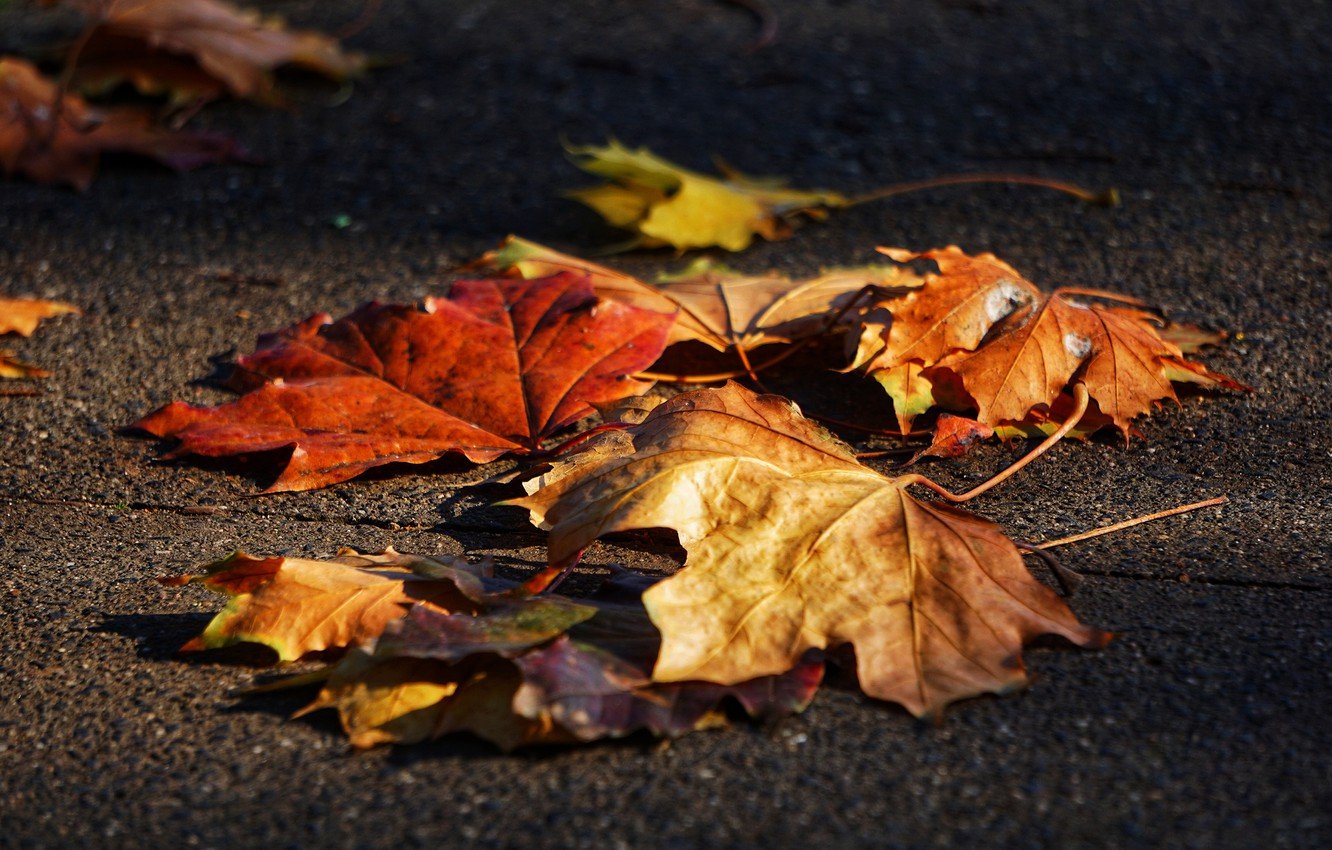![Кленовый лист на асфальте]()