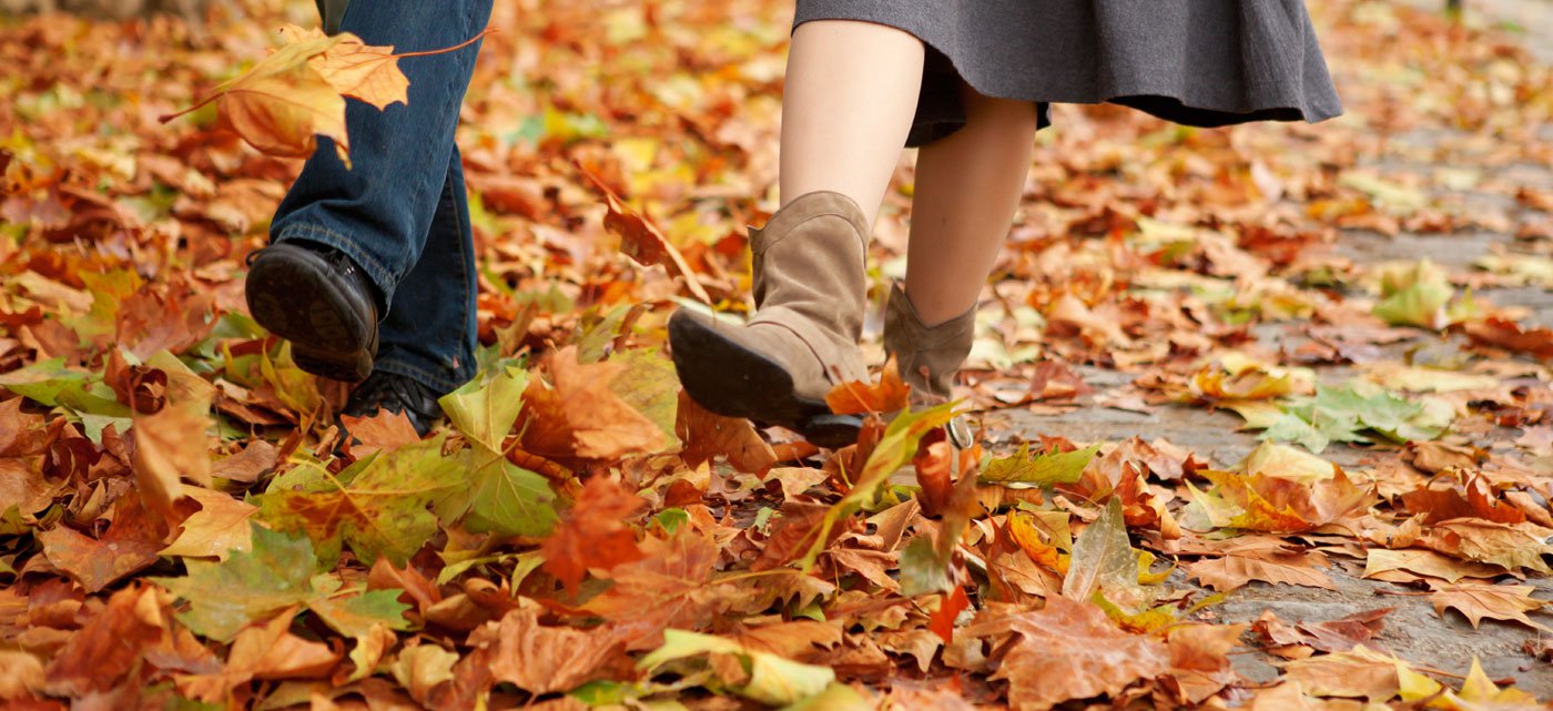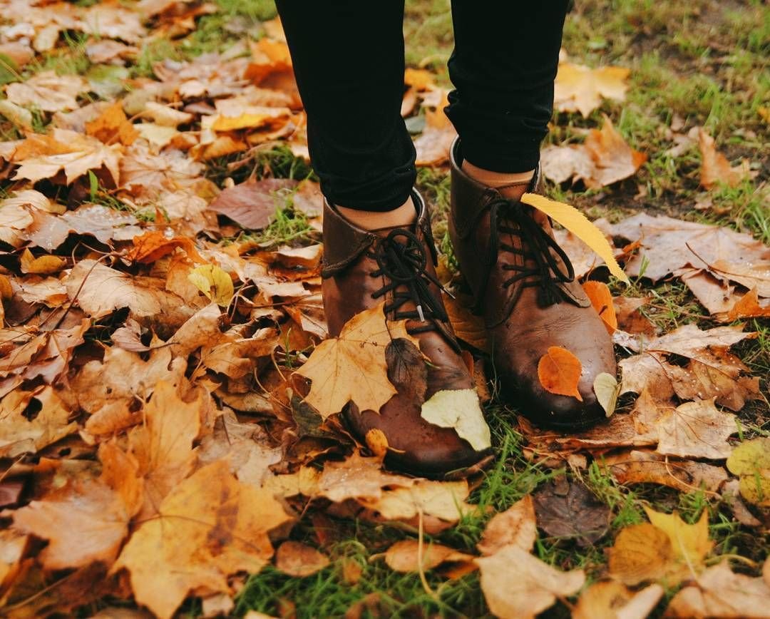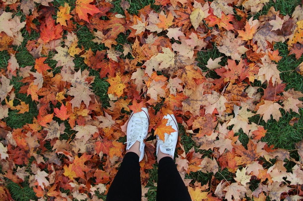 ![Ноги в осенних листьях]()